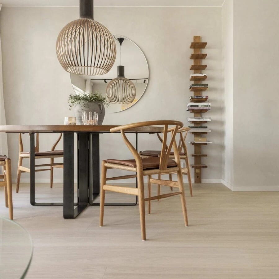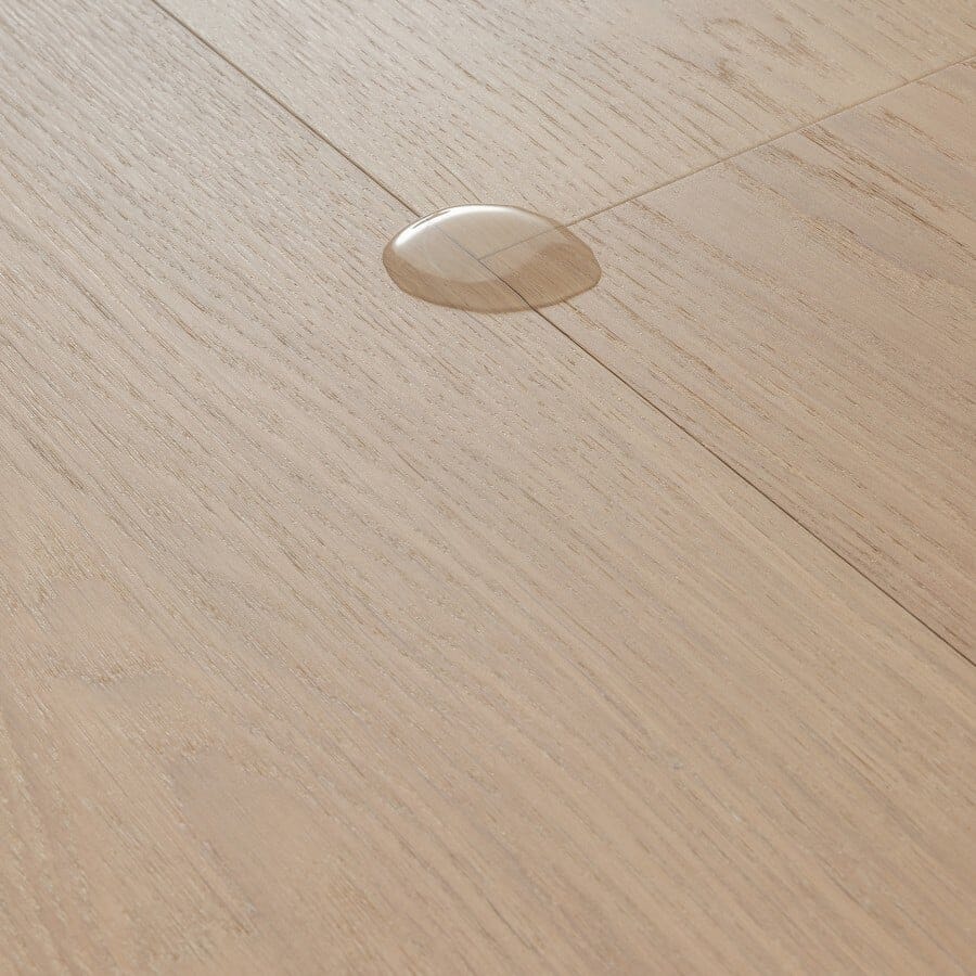 Bjelin Larvik er et moderne gulv i herdet tre med børstet lakkoverflate. Den strålende Powder White-fargen er satt sammen med Select-sorteringen, som er ren og harmonisk. Gulvet er produsert av FSC-sertifisert europeisk eik. Den børstede lakkoverflaten gir en naturlig trefølelse – på samme måte som oljede gulv – men lakken gjør gulvet enklere å rengjøre og vedlikeholde. Vi anbefaler børstede og lakkerte overflater i alle deler av boligen.