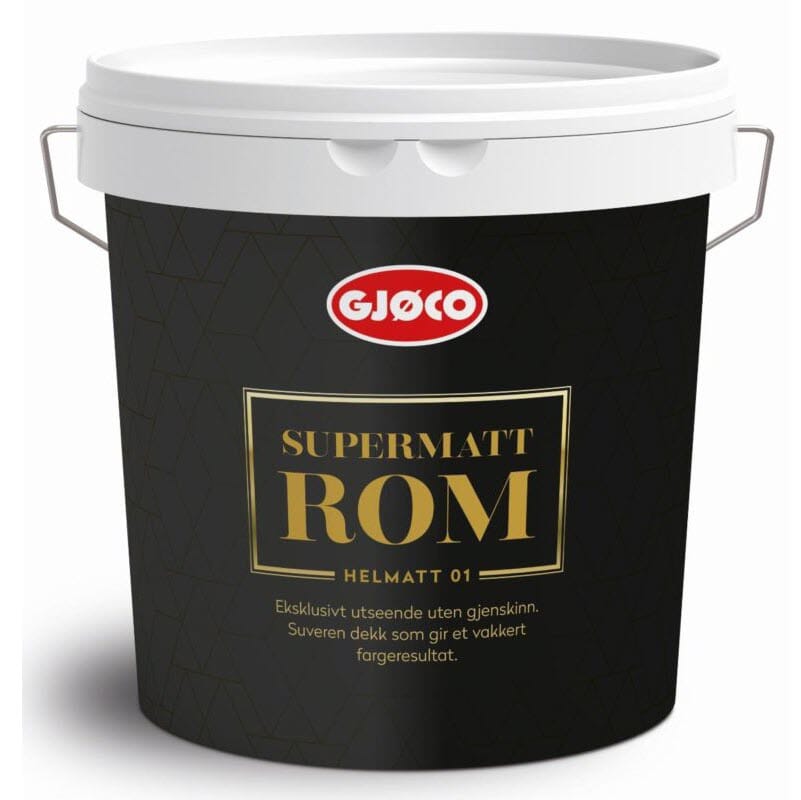 Gjøco Supermatt Rom 01 er en vannfortynnbar, helt matt akryl veggmaling som gir en dyp farge og behagelig. Maling resultater uten refleksjoner. Brukes på vegger av for eksempel byggebrett, malbart tapet, gips, betong og sandfyllstoff.