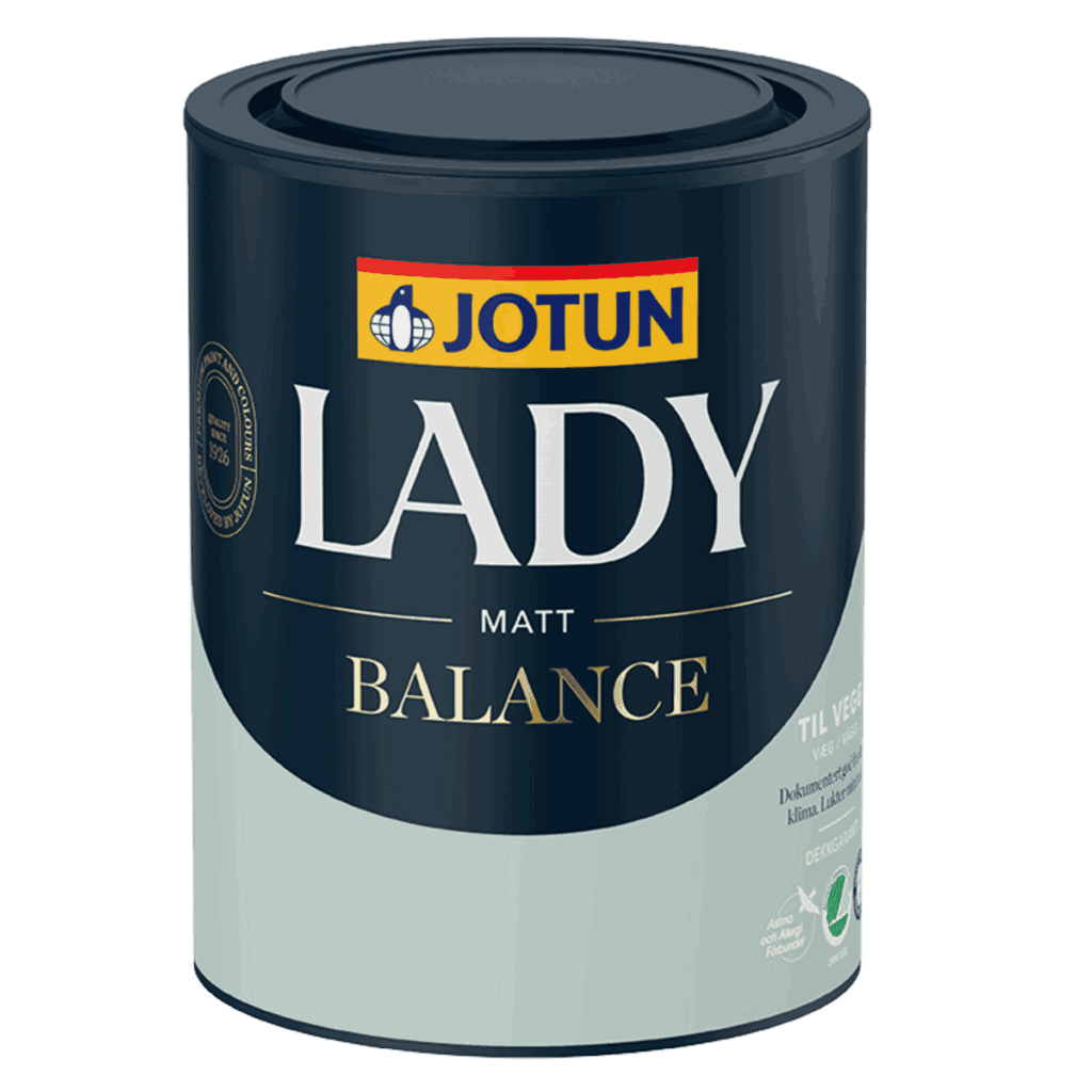 LADY Balance gir deg vakre, matte vegger og godt inneklima. Den vakre, matte overflaten lar fargenes naturlige og harmoniske nyanser komme frem og gir deg rom det er godt å være i. Bilde hentet fra Jotun.